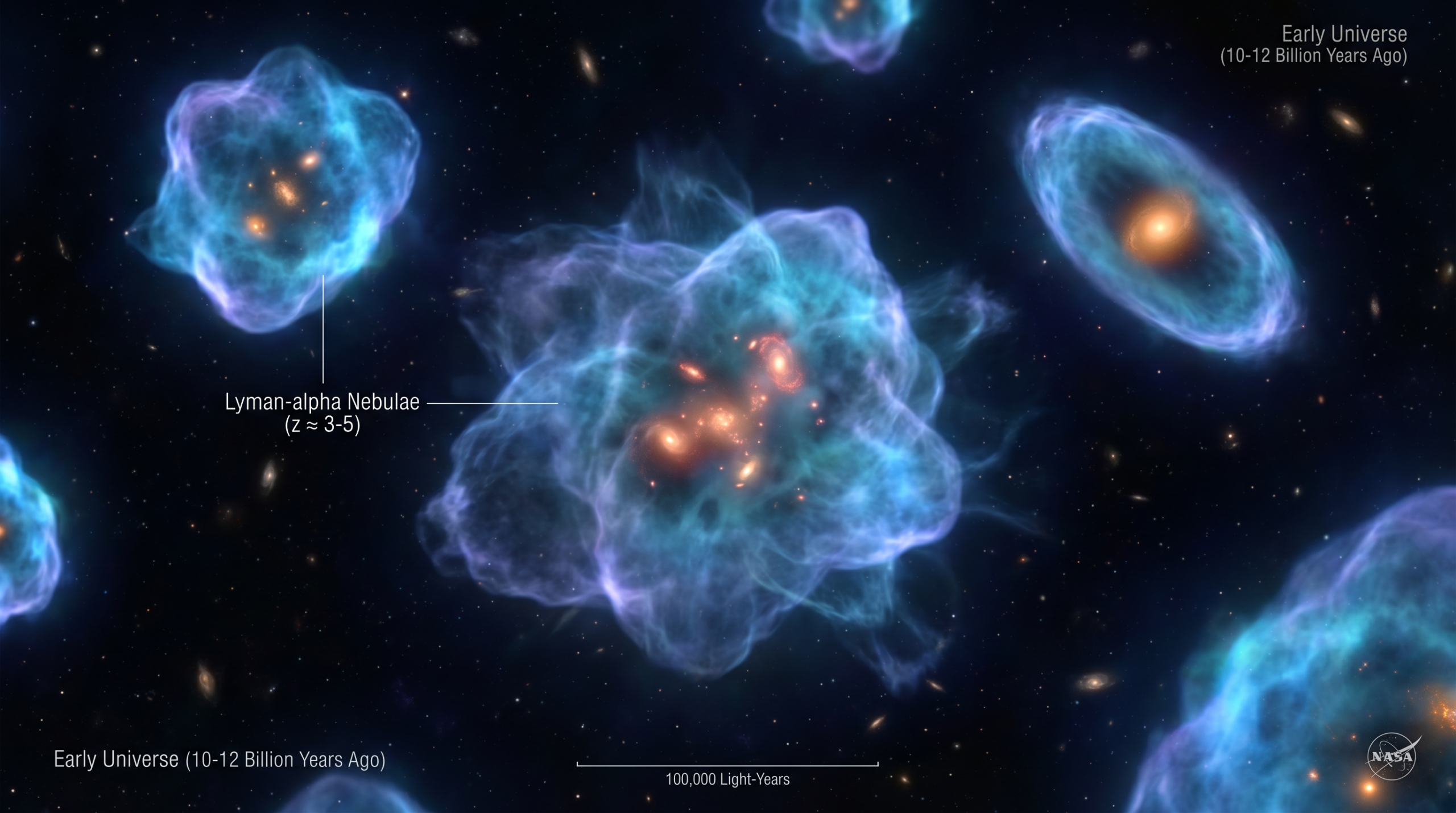 Para que essas galáxias crescessem tão rápido, a teoria dizia que elas precisavam estar cercadas por reservatórios gigantescos de gás hidrogênio. Pense nessas nuvens como enormes “halos” ou bolhas de gás envolvendo as galáxias, conhecidas tecnicamente como nebulosas Lyman-alpha. Até recentemente, os astrônomos só tinham evidências de alguns milhares dessas nuvens, o que era muito pouco para explicar o crescimento acelerado de tantas galáxias.